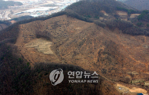 '하늘에서 내려다 본 재선충 광주' -연합뉴스 숲 8만여 평 초토화..축구장 20여개 민둥산 변해 재선충에 습격당한 경기 광주 (광주=연합뉴스) 김도윤 기자 = 재선충병에 감염된 것으로 확인된 경기도 광주시 초월읍 늑현리 일대 잣나무림이 벌목 작업으로 숲 일부를 도려낸 것처럼 나무들이 잘려나간 채 그루터기만 덩그러니 남아 있다.<<전국부 기사 참조>> kyoon@yna.co.kr (끝) (광주=연합뉴스) 김도윤 기자 = 잣나무 재선충은 도로변 야트막한 야산을 삽시간에 민둥산으로 초토화시킬 정도로 위력적이었다. 얼마 전까지만 해도 5-15m 높이로 빽빽하게 들어서 있던 잣나무와 소나무 등 키 큰 나무들은 모두 벌목돼 밑동만 남긴 채였고 주변에 있던 키 작은 관목과 가지들도 흔적 없이 베어져 이 곳이 언제 울창한 숲이었는지 알 길이 없었다. 50-60년 동안 녹색 전령으로 이 곳을 묵묵히 지켜왔지만 재선충 앞에 모두 사라지고 만 것이다. 정부 차원의 종합대책이 발표된 26일 연합뉴스 기자는 정밀 항공예찰에 나선 광주시 임대 헬기에 동승해 국내는 물론 세계에서 처음 잣나무 재선충 감염목이 확인된 경기도 광주시 초월.오포읍과 중대동 일대를 돌았다. 하늘에서 내려다 본 광주시는 경안천을 사이로 높고 낮은 산들이 이미 봄기운에 젖어 푸른 옷을 뽐내고 있었다. 그러나 그도 잠시, 중부고속도로를 따라 남쪽으로 초월읍 늑현리를 지날 무렵 우측으로 벌거숭이산이 눈에 들어 왔다. 동행한 광주시청 담당 공무원은 "이 일대 잣나무에서 재선충이 발견돼 지난 1월 감염목 주변의 높이 10m 이상 되는 나무들을 모두 베어냈기 때문"이라고 설명했다. 맞은 편 야산 역시 숲 일부를 도려낸 것처럼 나무들이 잘려 나간 채 그루터기만 덩그러니 남아 있었고 국도 43호선 주변 오포읍 문형리 야산의 한쪽 면은 푸른 잣나무 대신 시뻘건 흙에 까만 점들만 박혀 있었다. 이 곳 역시 재선충 의심 나무를 베어 내 민둥산이 된 뒤 그루터기가 태워졌기 때문이다. 광주시의 경우 지난해 말 초월읍.중대동에서 세계에서 처음으로 잣나무 7그루가 재선충병에 감염된 것으로 확인된 이후 모두 308그루가 감염돼 주변 잣나무림 27㏊(8만여 평) 2만5천여 그루가 베어져 사라졌다. 축구장 20개가 넘는 면적이다. 특히 생물종이 단순한 잣나무림은 베어지는 즉시 이 처럼 잔디와 목초만 남아 민둥산이 돼 버리고 녹지자연도도 10등급 중 상위 등급에서 최하위권인 2등급으로 뚝 떨어져 버린다. 재선충은 이렇듯 도심 허파 기능을 하는 자연녹지가 순식간에 파괴돼 생태계를 교란하는 심각한 후유증을 남겼다. 담당 공무원은 "재선충병 조사 당시 잣나무에 난 구멍은 5㎜에 불과했는데 산림에 이렇게 큰 구멍을 낼 준 몰랐다"며 "재선충의 위력을 실감했다"고 털어놨다. 경기 광주에서 출발한 잣나무 재선충은 지금 남양주로, 강원도 춘천과 원주로 확산되면서 산림당국을 초긴장 상태로 몰아넣는 상황이 전개되고 있다. 폐허를 뒤로 하고 광주시청으로 돌아서는 헬기의 굉음은 "만일 다른 수종에도 재선충병이 확산되면 우리나라 산림은 그야말로 황폐화되는 것 아니냐"는 담당 공무원의 걱정이 기우에 그치기를 바라는 듯 했다.
