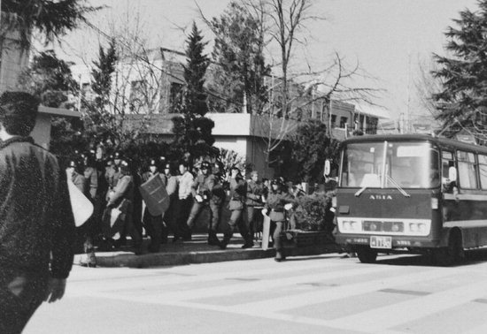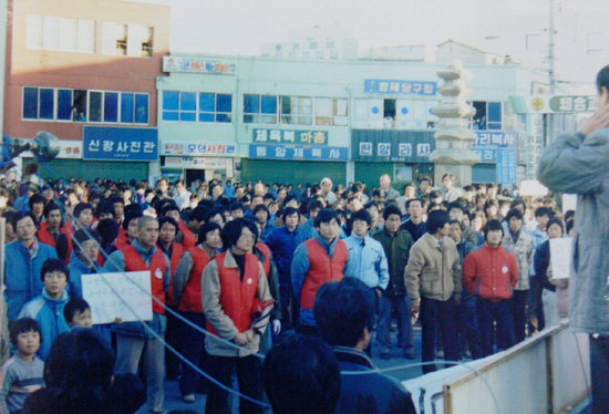 87년 4월 시국미사가 열린 거창성당 앞에 전투경찰이 배치되고 있다. [87년 경남 6월에서 9월까지 항쟁의 기록]⑬ 87년 3월에서 4·13까지 -도민일보 정권·언론 야합…박종철 군 49재 행사도 탄압 2월 7일 고 박종철군 국민추도회 이후에도 경남도민의 투쟁은 끊임없이 이어졌다. 2월 15일 오전 10시에는 민주산악회 마산지부가 무학산 완월폭포에서 50명의 회원들과 민주인사가 참여한 가운데 '살인정권 타도하여 문민정치 구현하자'는 플래카드를 들고 '고 박종철 군 추도식'을 열기도 했다. 이런 와중에 2월 24일 (주)통일에서는 기관원들과 공장장 등 관리자 수십 명이 노동조합 총회소집을 추진 중이던 유해춘씨의 사물함을 부수고 서명용지와 노트를 강탈해갔으며 한용덕씨를 구타하고 수명의 노동자들을 회사 내에 밤늦게까지 감금하는 일이 벌어졌다. 당시 유해춘씨 등은 비밀리에 회사 측과 임금교섭을 벌여온 어용노조에 대해 노조민주화운동을 벌이고 있었다. 회사는 유씨와 서모씨 등을 해고했다. 이런 탄압에도 불구하고 (주)통일 해고자들은 <통일노동자신문>을 끊임없이 발행하면서 투쟁을 계속했다. 초기 150부였던 이 신문은 87년 4·5월 500부로 늘어났다고 한다.(김하경, <내사랑 마창노련 상>, 갈무리, 1999) 또 마산수출자유지역의 한국수미다전기에서도 노조 결성 투쟁이 이어지고 있었고, 마산의 택시회사인 금성교통에서도 3월 3일 조합원 50여명이 해고철회 등을 요구하며 파업농성을 벌였다. 대우중공업 창원공장 노동자 1000여명이 2월 26일 자연발생적으로 기만적인 임금협상에 항의하며 파업에 들어갔다. 파업은 28일 회사의 감시와 협박에 의해 잠시 중단됐으나, 3월 3일부터 자연스럽게 중식거부와 잔업거부로 이어졌다. 이 투쟁은 3월 7일까지 이어졌는데, 6월 항쟁 이후 폭발하게 된 7·8·9노동자 대투쟁의 전주곡인 셈이었다. 이처럼 3월 3일은 대우중공업과 금성교통의 투쟁이 있었던 날이기도 하지만, 당시 전두환에게는 대통령 취임 6주년이 되는 날이었고, 민주화운동세력과 국민에게는 박종철군이 고문으로 억울한 죽음을 당한지 49재가 되는 날이었다. <경남신문> 독재자는 띄우고 국민항쟁은 '불순세력 작태'로 매도 ◇87년 3·4월의 언론보도 = 이처럼 여러 가지 사건과 의미가 중첩되는 날, 유일한 지역신문이었던 <경남신문>의 1면 머리기사는 뭐였을까. '전 대통령 취임 6돌 치적-내외인사 10만여 명 접견-현장 직접 확인 분주한 나날-해외순방 7회·국내출장 11만㎞-청원 6만8천여 건 해결'이었다. 신문사의 입장을 전하는 그날의 사설은 뭐였을까. '가두시위 언제까지-3·3 정치대행진의 우려'였다. 주최 측이 '고문추방 국민대행진'이라고 명명한 박종철군 49재 행사를 '정치대행진'으로 이름까지 바꿔버린 사설은 "이른바 '3·3대행진'은 정치적 위기감을 부채질하면서 가뜩이나 스산한 국민들의 가슴에 불안한 회오리바람을 몰아붙였다"고 규정했다. 그러면서 "그동안 우리는 정치, 경제, 사회의 지속적인 발전을 위해 대다수 국민들이 안정을 바라고 있다는 사실과 함께 일부 불순세력의 작태에 혐오감마저 느끼고 있음을 확인하고 40년 피땀 흘려 이룩해온 안정과 번영을 우리 손으로 지켜야 한다는 다짐을 분명히 한 바 있다"고 주장하고 있다. 또 사회면에는 '대검, 3·3행진 처리지침 시달-행진에 참가해도 처벌-해산명령 불응 모두 연행키로' '학생 가담 적극 저지-문교부, 박군 49재 관련 지시' 등의 협박성 기사가 실렸다. 3·3대회 다음날인 4일자 사회면 머리기사는 '경남대생 전방부대 입소교육 현장을 가다'라는 명패와 함께 '분단의 현실 뼈저리게 느껴'라는 큰 제목이 붙어 있었다. 이런 식으로 국민의 민주화요구를 봉쇄하기 바빴던 이 신문의 기자들은 한 달 후인 4월 7일 신문의 날을 맞아 '시일야방성대곡'으로 일제의 국권침탈에 항의했던 언론인 장지연의 묘소를 참배했다는 기사가 실려 있다. 또 전두환의 4·13 호헌조치가 발표된 날의 1면 머리는 '전 대통령 특별담화'라는 명패를 달고 '현행 헌법으로 내년 정부 이양-혼란 막게 소모적 개헌논의 지양-정치에도 신진대사 이뤄져야'라는 제목을 겹겹이 달았고, 사회면에는 '전 대통령 특별담화 각계 반응'을 실었는데, '안보·안정 다지는 불가피한 조치'라는 큰제목과 '점진적 민주화 개혁 큰 기대-국력낭비·국론분열 막을 결단'이라는 부제가 붙었다. 이 기사에서 국민반응으로 소개된 사람들은 박원근 반공연맹이사장, 홍숙자 한국여성단체협의회 회장, 김용대 대한상이군경회장, 김동인 한국노총위원장, 이해랑 예술원장, 조경희 예총회장, 윤한도 민정당 경남도지부 사무국장, 의현 대한불교조계종 총무원장, 김영구 마산지방변호사회 회장 등이었다. 마산 · 창원 · 진주 · 거창서 학생·농민 거리투쟁 나서 경찰과 대치 ◇마산·창원·진주, 그리고 거창에서 = 정부와 언론의 이런 '일심동체' 속에서도 3월 3일 고문추방 국민대행진의 날은 밝았다. 진주의 경우 경상대 민주광장에서 '고 박종철군 49재 추모대회'가 열렸다. 고문 추방 등의 구호를 내걸고 묵념을 시작으로 거행된 추모대회는 총학생회장의 분향과 부회장의 추모사, 그리고 사회부장