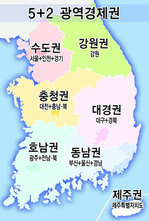 전국 '5+2 광역경제권'재편… 동남권광역본부 설치 -부산일보 인수위 발전 전략 발표… 동남권 해양산업 클러스터·남부권 신공항 등 추진 전국이 16개 시·도 행정구역을 초월하는 '5+2 광역경제권'으로 재편된다. 대통령직 인수위원회는 24일 대선 과정에서 밝혔던 지역 발전 공약들을 구체화한 '창조적 광역발전 전략'을 발표했다. 인수위 기획조정분과위 박형준 인수위원은 "기존의 시·도 행정구역을 초월한 광역경제권을 통해 지역의 경제성장과 공동번영, 실질적 지방분권을 달성하겠다"고 밝혔다. 이를 위해 전국을 5대 광역경제권(동남권, 수도권, 충청권, 호남권, 대구·경북권)과 2대 특별광역경제권(강원권, 제주특별자치도)로 묶는 '5+2 광역경제권'이 설정된다. 박 위원은 "이번 전략을 마련하는 과정에서 행정구역 개편은 검토되지 않았다"면서 "행정구역 개편은 단기간에 이뤄지기가 매우 힘들고 앞으로 별도의 지방분권 문제를 전면 검토하는 과정에서 제기될 수도 있을 것"이라고 말했다. 인수위는 광역경제권 육성 사업을 범정부적으로 추진하기 위해 대통령 직속의 국가경쟁력강화위원회 내에 '광역경제권 활성화 추진단'을 설치키로 했다. 또한 권역별로 '광역경제권 본부'를 설치, 광역경제권 활성화 전략 및 사업추진 계획을 수립하고 집행하는 역할도 담당하도록 했다. 인수위는 '창조적 광역발전'을 달성하기 위한 6대 전략으로 △광역경제권 연계사업의 활성화 △시장친화적 지역경제활성화 촉진 △광역경제권 인프라 확충 △낙후지역의 신발전 지대로의 전환 △수도권과 지방의 공동발전체제 형성 △협력·통합·분권적 광역경제권 제도의 실천 등을 발표했다. 인수위가 발표한 이번 전략에 따르면 부산·울산·경남이 묶어진 동남권의 유망 주력산업으로는 해양산업 클러스터 조성, 남해안 조선산업벨트 추진, 경남 서부지역 지리산 문화벨트 조성 등이 제시됐다. 또 동남권 광역인프라 구축을 위해서는 남부권 신공항 건설, 부산 외곽순환고속도로 착공, 제3세대 항만 기반구축, 김해-부산-양산-울산 광역도시철도 구축 등이 추진된다. 낙후지역의 발전을 위해서는 도농연계 전원마을과 농산물 가공산업 등 '신발전 패키지사업'이 제안됐다. 공동발전체제를 위해서는 수도권과 지방 간의 상호파급효과가 큰 업종에 대한 투자를 적극 지원한다. 이어 협력·통합·분권적 광역경제권 제도의 실천을 위해 각 지자체에 행정·재정적 인센티브가 제공된다. 인수위는 광역경제권사업의 재원 마련을 위해 "기존의 국가균형발전특별회계를 재편하고 관련 부처 보조금과 교부세 재원, 신규 재원 등으로 광역경제권 특별회계를 운영하는 방안을 검토하겠다"고 밝혔다. 또 광역경제권제도를 법적으로 뒷받침하기 위해 가칭 '지역 간 협력촉진 등 광역경제권 발전특별법'을 제정하는 방안도 추진하기로 했다. 이와 함께 실질적 지방분권을 달성하기 위해 지방이 더 잘할 수 있는 기능은 지자체에 과감히 이양하고, 지방교부세 확대, 지방조세권 확충, 지역공동세 확대, 교육자치 도입 등의 조치도 검토키로 했다.