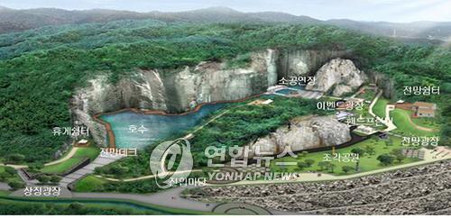 <흉물스런 채석장 '포천아트밸리'로 탈바꿈> -연합뉴스 포천아트밸리 조감도 (포천=연합뉴스) 30년 동안 돌을 캔 채석장에 조성되는 경기도 포천시 신북면 기지리 '포천아트밸리' 조감도. 포천아트밸리는 상반기 중 개장돼 시민들을 위한 문화.예술공간으로 탈바꿈한다.<<포천시 제공>> (포천=연합뉴스) 우영식 기자 = 30년 동안 돌을 캔 채석장이 조각공원과 야외공연장 등 문화.예술공간으로 재탄생 한다. 경기도 포천시는 2004년부터 155억원을 들여 신북면 기지리 산 40의 1 일대 9만9천㎡ 규모의 채석장 부지에 추진 중인 '포천아트밸리' 조성공사를 최근 마무리하고 상반기 중 개장할 예정이라고 25일 밝혔다. 포천아트밸리는 병풍처럼 둘러싸인 절벽을 배경으로 한 1천510㎡ 규모의 야외전시장과 1천165㎡의 소공연장이 마련됐다. 또 공연장 주변은 다양한 조각품이 전시되는 조각공원으로 꾸며지고, 채석 과정에서 만들어진 7천40㎡ 규모의 호수 주변에는 전망대와 쉼터가 들어섰다. 야외공연장 인근에는 관람객들이 색다른 경험을 할 수 있도록 맨발체험장이 설치됐으며 관람객들의 이용 편의를 위해 차량 124대가 동시에 주차할 수 있는 주차장도 조성됐다. 지상 3층, 연면적 1천147㎡ 규모의 전시관에는 도서실, 창작전시실, 창작체험실, 기획전시관, 상설전시관, 카페테리아 등이 들어서 문화공간으로 활용된다. 시는 조만간 운영 주체를 설립하고 구체적인 프로그램을 마련해 포천아트밸리 운영을 시작할 계획이다. 시는 또 포천아트밸리를 정부에서 추진 중인 '산업유산 예술창작벨트' 시범지역 지정을 추진해 운영을 내실화 한다는 방침이다. 포천시 최규진 공보담당은 "포천아트밸리는 공연과 전시, 체험이 동시에 이뤄질 수 있는 복합 문화예술 공간으로 시민들의 각광을 받을 것으로 기대한다"며 "특히 흉물스럽던 폐채석장을 아름다운 문화.예술공간으로 탈바꿈 시켰다는 점에서 의미가 있다"고 밝혔다.