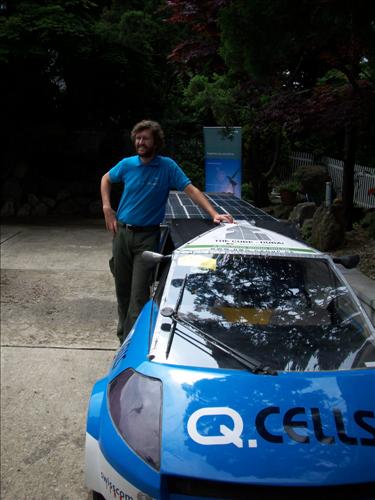 <환경전도사 '루이 팔머와 솔라 택시' 한국에 왔다>(종합) -연합뉴스 (서울=연합뉴스) 이주영 기자 = 스위스 첨단 과학기술로 제작된 태양광 자동차로 세계일주를 하고 있는 환경전도사 루이 팔머 씨와 그의 자동차 '솔라 택시(Solar Taxi)'가 한국에 왔다. 주한 스위스대사관은 3일 오전 대사관에서 팔머 씨가 참석한 가운데 기자간담회를 열어 지난 11개월 간 3만㎞를 달려온 솔라 택시를 공개하고 시승행사도 가졌다. 팔머 씨는 간담회에서 "우리 모두 '기후변화를 막기 위해 내가 무엇을 할 수 있나' 자신에게 물어야 할 때"라며 "기후변화를 막는 기술을 이미 개발돼 있기 때문에 필요한 것은 사람들의 실천의지와 기업들의 참여"라고 말했다. 헝가리 출신으로 어려서 스위스로 이주한 팔머 씨는 10대부터 세계일주를 꿈꾸다 지난 15년간 교사로 재직하며 새로운 도전을 찾아 세계를 여행하기 시작했다. 지금까지 자전거로 아프리카를 횡단하고 초경량비행기로 미국과 남미도 여행했다. 그러던 그는 지난해 7월 3일 "보통 시민으로써 세계를 바꿀 수는 없지만 기후변화가 얼마나 심각한지, 그리고 온실가스를 줄일 수 있는 좋은 방법들이 얼마나 많은지 보여주겠다"며 솔라 택시를 타고 세계일주에 나섰다. 지금까지 유럽 20여 개국과 중동을 거쳐 인도, 인도네시아, 뉴질랜드, 호주, 싱가포르, 말레이시아, 태국, 중국 등 3만1천654㎞를 여행했고 이번에 26번째 나라로 한국을 찾았다. 그는 지난해 12월에는 발리 기후변화협약 회의장 앞에서 호주 환경장관과 뉴욕시장, 지난해 노벨평화상을 수상한 유엔 기후변화위원회(IPCC) 의장 등을 상대로 시승행사를 가져 주목을 받기도 했다. 솔라 택시는 스위스 취리히 연방공대 등 4개 대학이 첨단 기술을 접목시켜 3년여에 걸쳐 만든 2인승 승용차로 시속 90km로 주행할 수 있다. 차 본체에는 후원기업인 태양전지업체(Q-Cells)가 제작한 고효율 태양전지판이 장착된 트레일러가 연결돼 있으며 이 패널이 차를 움직이는 데 필요한 전력의 50%를 공급한다. 나머지 전력 50%는 전력네트워크를 통해 스위스 통신회사(Swisscom) 본사에서 패널로 공급받는다. 이는 밤 또는 구름이 많이 낀 날에 차량을 운행하기 위한 것으로 실제 충전은 각국 스위스대사관에서 하게 된다. 팔머 씨는 "솔라 택시가 상용화되면 가격이 6천유로(약 950만원) 정도가 될 것"이라며 "햇빛이 없는 밤이나 흐린 날에도 충전지에 2천100원어치의 전기를 충전하면 300㎞를 운행할 수 있다"고 말했다. 그는 10일까지 국내에서 각종 환경행사에 참여할 예정이다. 환경의 날인 5일에는 서울광장에서 열리는 '미래세대의 서약-온난화로부터 지구를 구하는 10계명' 행사에 참여하고 대전 KAIST와 부산 신라대에서 강연도 한다. 그는 10일 한국을 떠나 캐나다 밴쿠버로 향하며 12월 중순까지 5대륙, 40개국, 400개 도시를 솔라 택시로 여행, 5만㎞를 주행한 뒤 스위스로 돌아갈 예정이다.