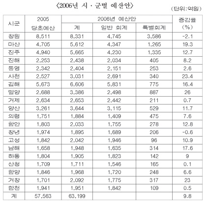 2006년도 경남 도내 시·군별 예산안 분석 -거창신문