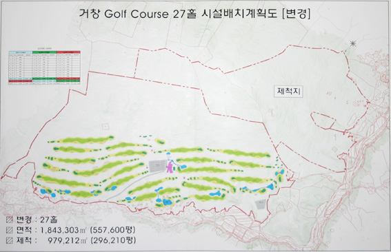 감악산 골프장 다시 추진한다 -거창신문 27홀 회원제 55만여 평에 2010년까지 거창군 신원면 덕산리 산 13번지 일대 85만 4천 평에 910억 여 원을 들여 36홀 규모로 조성하려던 감악산 골프장 사업이 지난 8월 10일 사업주측의 관리계획입안서 취하원 제출로 일시 중단되었다가 지난달 21일 사업계획 축소와 시행업체 변경을 주 내용으로 한 사업계획이 거창군에 재접수되어 결과가 주목되고 있다. 감악산 골프장은 지난 4월 우신컨테크(대표 이승재)가 도시관리계획 입안(골프장 설치) 제안서를 거창군에 제출하여 거창군 신원면 덕산리 산 13번지 외 4필지, 85만 4천 평에 910여 억 원을 들여 36홀 규모의 골프장을 2011년 개장을 목표로 사업을 추진하다가 지역주민들의 반대로 잠정 중단되었다. 지난달 21일 사업주측은 장영건설산업(주)(대표 박제현) 명의로 55만 7천 6백 평의 면적에 710억 원을 투입하여 27홀 규모의 회원제 골프장을 2010년까지 조성하겠다며 도시관리계획 입안 제안서를 군에 제출함에 따라 골프장 사업이 새 국면을 맞게 됐다. 이는 당초 36홀 규모에서 9홀이 줄어들고 사업비도 줄여 개장 목표는 1년 앞당기고 마을과 인접한 구역을 골프장 계획면적에서 제외한 사업계획으로 알려졌다. 거창군은 사업자측의 제안서를 토대로 60일 이내 (1월 19일까지)에 제안내용의 반영 여부를 결정하게 되며 지역주민들의 의견을 적극 수렴해 결정할 것으로 알려졌는데 인근 주민들을 대상으로 설명회를 갖고 내년 1월중에 군 계획위원회를 열 것으로 전해졌다. 한편 사업주측은 88고속도로확장과 군산, 울산간 고속도로의 접근성이 용이한 경남 서북부 지역의 골프장 개발을 선도한다는 계획으로 지역경제 활성화와 고용 창출에 긍정적으로 기여한다는 주장을 내세우고 주민들을 중심으로 한 반투위측은 환경오염과 식수 고갈, 친환경 농업기반 붕괴 등을 주장하고 있어 양측의 인식차이를 어떻게 극복할지가 숙제로 남아 관심이 집중되고 있다.