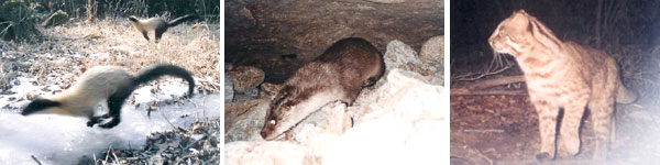 지리산 멸종위기 동, 식물 다량 발견 -경남신문 지리산 칠선계곡과 뱀사골 등 주요 계곡에서 멸종위기 야생동물인 반달가슴곰(천연기념물 329호)과 수달 보호 야생동물인 하늘다람쥐, 삵, 담비 등을 비롯해 다량의 동·식물의 서식처가 확인됐다. 위 사진은 무인센서카메라에 발견된 담비(왼쪽부터), 수달, 삵. /국립공원관리공단 지리산사무소 제공