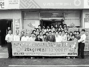 자매마을 감자 직거래 -부산일보 사진 설명: 농협중앙회 부산 충렬지점(지점장 한영우)은 최근 지점 영업장에서 동래구 안락동 10개 부녀회와 공동으로 부녀회의 자매결연마을인 거창군 중촌마을 고랭지 감자 500박스를 직거래 판매했다.