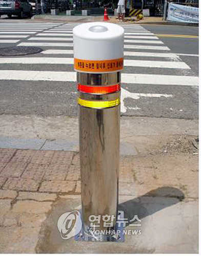 <카메라뉴스> 새 보행자 횡단신호기 -연합뉴스 횡단보도 新 보행자신호기 (고양=연합뉴스) 한국교통연구원은 29일 '볼라드 겸용 보행자 작동 신호기'를 경기도 고양시 율동초교와 장성중학교 앞 횡단보도 2 곳에 시범 설치했다. << 전국부 기사참조, 한국교통연구원 제공 >> kimsup@yna.co.kr (끝) (고양=연합뉴스) 한국교통연구원은 '볼라드 겸용 보행자 작동 신호기'를 경기도 고양시 율동초교와 장성중학교 앞 횡단보도 두 곳에 시범 설치했다고 29일 밝혔다. 이번 설치는 교통연구원이 2005년 9월 '보행자 작동 신호기의 효과 분석 및 도입 확대방안' 연구 결과 이용 편의가 높아져 상당한 자동차 연료 절감 효과가 있는 것으로 나타난 데 따른 것이다. 교통연구원은 시범 설치에 이어 건교부를 통해 횡단보도에 기존 신호등형을 볼라드 겸용으로 교체할 것을 전국 지자체에 권고했다. 보행자 작동 신호기는 횡단보도 신호등 중간 지점에 설치돼 있으며 보행자가 없을 때는 차량 진행만 시키다 보행자가 이를 누르면 곧 보행자 신호가 들어오는 장치로, 그동안 눈에 잘 띄지 않는 불편함이 지적돼 왔다. 그러나 볼라드 겸용은 횡단보도 입구에 차량 진입을 막기 위해 눈에 잘 띄도록 설치돼 있는 높이 80-100㎝ 높이의 볼라드에 신호기를 설치해 이용률을 크게 높이는 장점이 있다고 교통연구원은 설명했다. 교통연구원은 왕복 4차로 이상 횡단보도 7천700여 곳(추정치)에 볼라드 겸용 작동 신호기를 모두 설치하면 연간 2천770여억 원의 자동차 대기시간 및 연료비용 절감 효과가 있다고 분석했다. 이는 볼라드 겸용 1 곳 설치비는 600만원이며, 이에 따른 편익 효과는 연 3천500만원이라고 설명했다.(글 = 김정섭 기자, 사진 = 교통연구원 제공)