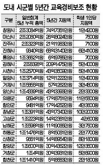 도내 교육경비 보조 부자 자치단체 인색 -도민일보