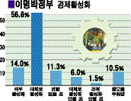 ◆경제 활성화·영어공교육 강화-경남신문 여론조사 경남도민 10명중 7명은 이명박 정부가 경제를 활성화할 것이라고 긍정적으로 생각하는 것으로 나타났다. 도민들은 이명박 정부 출범으로 경제가 얼마나 활성화될 것이라고 생각하느냐는 질문에 70.8%가 활성화될 것이라고 응답했다. 이 가운데 매우 활성화될 것이라는 응답이 14.0%, 대체로 활성화될 것이라는 대답이 56.8%였다. 반면 변함없을 것이라고 생각하는 응답자가 11.3%, 활성화되지 않을 것이라는 응답도 7.5%, 부정적으로 생각하는 응답자도 18.8%에 달하는 것으로 조사됐다. 특히 다른 연령대에 비해 40대와 50대가 각각 74.3%와 75.8%로 경제 활성화에 높은 기대를 하고 있는 것으로 나타났다. 또 영어 공교육 강화정책에 대해서는 10명중 4명이 찬성하는 것으로 나타났다. 이명박 정부의 영어 공교육 강화정책에 찬성한다는 응답이 47.9%로, 반대 36.2%보다 11.7% 높게 조사됐다. 적극적으로 찬성한다는 응답자는 19.2%, 대체로 찬성한다는 응답은 28.7%로 나타났다. 대체로 반대한다는 응답자는 21.4%, 적극 반대는 14.8%로 조사됐다. 특이한 것은 20대(찬성 39.6%-반대 46.8%), 30대(찬성 40.0%-반대 49.4%), 40대(찬성 45.6%-반대 46.6%)의 연령층에서 공교육 반대가 더 높은 것으로 조사됐지만, 50대(찬성 51.2%-반대 32.4%)와 60대(56.6%-반대 15.1%) 연령층에서는 찬성한다는 의견이 훨씬 높았다.