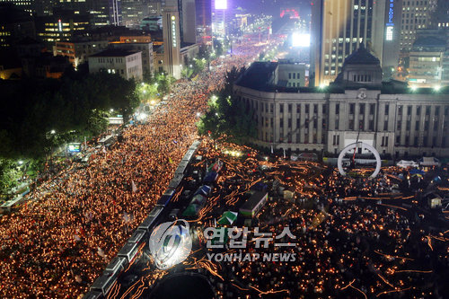 <`숫자 샅바싸움'..8만 對 70만 누가 맞나> -연합뉴스 촛불의 바다...몇 명이나 될까? 촛불의 바다 (서울=연합뉴스) 6.10항쟁 21주년인 10일 저녁 서울광장과 세종로를 촛불인파가 가득 메우고 있다. << 사진공동취재단 >> 시위 참가자 수 놓고 경찰-주최 측 큰 차이 (서울=연합뉴스) 강건택 기자 = 촛불시위 참가자 수를 둘러싼 주최 측과 경찰의 `자존심 싸움'이 치열하다. 양측이 주장하는 숫자의 격차가 날이 거듭될수록 커지더니 급기야 10일에는 거의 9배까지 벌어지고 말았다. 경찰은 6.10항쟁 21주년을 맞아 10일 서울 광화문 일대에서 열린 `6.10 촛불대행진'의 참가자 수를 8만 명으로 집계한 반면 주최 측인 광우병 국민대책회의는 70만 명으로 잡았다. 지난달 2일 처음으로 쇠고기 문제에 관한 촛불문화제가 시작된 이래 경찰 추산 참가자 수보다 주최 측 추산 참가자 수가 최소 1.5배에서 최대 5배까지 많았지만 이날의 폭은 특히 심했다. 6월 항쟁 이후 최대 규모 집회였던 2004년 3월 노무현 전 대통령의 탄핵규탄 촛불시위(경찰 추산 13만 명. 주최 측 추산 20만 명)와 비교해도 도무지 납득이 안 되는 차이다. 국민대책회의는 이날 인파가 세종로사거리에서 남대문 부근까지 전 차로를 가득 메웠고, 서대문 방면 도로와 청계광장 주변에까지 넘쳐났다는 점을 `70만 명 운집론'의 근거로 내세웠다. 대책회의 관계자는 "탄핵 촛불집회 당시에는 시청에서 동화면세점까지만 메워졌는데도 언론에는 `30만 명'으로 보도됐다. 오늘은 그 이상이 확실하다"고 주장했다. 반면 경찰은 "탄핵 집회 때는 숭례문까지 시위대가 완전히 가득 찼다. 오늘은 그 정도까지 안 된다"며 다른 이야기를 했다. "밤에 촛불을 들고 서 있으면 시각적으로 많아 보인다"는 말도 곁들였다. 경찰은 3.3㎡(1평) 당 8명이 모인다고 보고 시위대가 차지하는 면적을 계산해 전체 인원을 산출한다. 또 국민대책회의는 20여명의 집계 요원을 풀어 시위대 주위를 둘러싼 지형지물을 분석한 뒤 비슷한 규모의 종전 집회와 비교해 참가 인원을 추산하고 있다. 촛불시위 참가자 숫자의 이런 차이는 여론을 의식해 한쪽은 최대한, 다른 쪽은 최소한으로 잡기 때문에 빚어지는 현상으로 보이지만 시민들 입장에서는 어리둥절할 수밖에 없는 대목이다. 익명을 요구한 경찰 관계자는 "이 정도 규모라면 실제로는 20만 명 될 것 같다"며 양측이 제시하는 숫자 모두에 불신을 드러냈다. 지난 2004년 촛불시위를 지켜봤다는 한 시민은 "오늘 촛불집회는 적어도 노 전 대통령 탄핵규탄 시위 규모를 넘어서는 것으로 보인다"는 견해를 밝혔다.