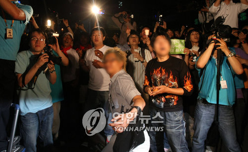 촛불시위대, 한나라당 당사에 계란투척 -연합뉴스
