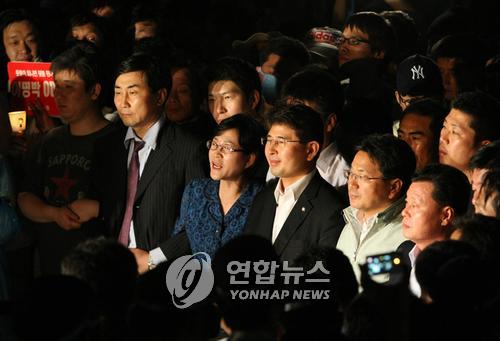 `고시발효'에 촛불시위대 이틀째 격렬 대치(종합) -연합뉴스