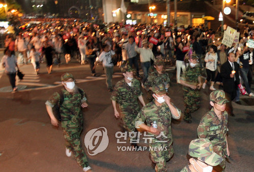 예비군복 입고 시위참가 '예비군' 처벌 추진 -연합뉴스