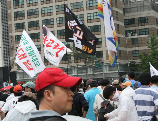통신·교통 발달…'지역'이 사라졌다 -도민일보 촛불집회가 서울로 집중되는 6가지 이유 지난달 28일 서울 촛불집회에는 부산과 경남 등 각 지역을 표시한 깃발이 대거 참여했다. /김주완 기자 한국의 근현대사를 바꾼 큰 항쟁들은 모두 서울이 아닌 지역에서 시작되었거나, 지역의 항쟁이 물줄기를 바꾼 결정적 계기로 작용했다. 동학농민혁명이 전라도 고부에서 시작됐고, 기미독립만세운동의 상징적 인물인 유관순 열사가 만세를 부르다 일경에 체포된 곳도 충남 천안이었다. 해방 이후 친일 친미정권이었던 이승만을 무너뜨린 1960년 4·19혁명은 2·28대구학생시위와 3·15마산의거에서 시작돼 4월 11일 김주열 열사의 참혹한 시신이 발견된 것을 계기로 전국으로 확산됐다. 또 박정희 독재의 종말을 고한 79년 부마민주항쟁과 80년대 반독재투쟁의 불씨가 된 광주민중항쟁 역시 '지역'이 중심이었다. 87년 6월 항쟁도 서울이 중심이긴 했으나 6월 14일 서울 명동성당 농성이 해산되면서 소강상태로 접어든 항쟁에 다시 기름을 끼얹었던 것은 진주와 마산, 부산 등 영남권의 격렬한 시위였다. 그러나 이번 촛불집회는 이상할 정도로 서울 중심성이 확고히 유지되고 있다. 전국 대부분 시군에서도 열리고는 있지만 주목을 받지 못하고 있을 뿐 아니라 정국 상황에 거의 영향력도 발휘하지 못하고 있는 것이다. 왜 그럴까? 서울과 지역을 오가며 촛불집회의 양상과 흐름을 취재해본 결과, 과거와 달리 이번 촛불집회에서 '지역'이 별로 역할을 하지 못하는 이유가 있었다. 첫째, 과거의 다른 항쟁과 달리 이번 촛불집회의 발원지가 '인터넷'이었다는 것이다. 2002년 미선이 효순이 참사사건 때와 2004년 노무현 대통령 탄핵반대 집회도 인터넷이 중요한 역할을 하긴 했지만, 이번 촛불집회 만큼 시작에서부터 진행과정까지 줄곧 인터넷이 중심이 되고 있는 항쟁은 드물다. 알다시피 인터넷은 '거리'와 '공간'의 개념이 없다. 서울이든 마산이든, 춘천이든, 광주든 인터넷에서는 동일한 공간일 뿐이다. 즉 거리와 공간의 차이가 없어져버린 항쟁이 이번 촛불집회라는 것. 따라서 인터넷에서 '가치와 관심사에 따른 공동체'는 있을지언정 '지역별 공동체'는 존재하기 어렵고, 있더라도 미미한 수준이라는 것이다. 특히 인터넷 공간은 조회수와 추천수, 댓글수에 따라 '선택과 집중의 법칙'이 철저하게 적용된다. 즉 하루에 올라가는 수천, 수만 건의 글 가운데 베스트 10위 또는 20위권에 들어가지 못한 글은 사장되고 마는 특성을 갖고 있다. 베스트에 올라간 글은 순식간에 수십 만 건의 조회수를 기록하지만, 나머지는 거의 읽히지 않은 채 묻혀버린다. 따라서 특정 지역의 사람들에게만 관심을 끌 수 있는 내용은 선택받을 수 있는 여지가 희박하다. 둘째, 발원지가 인터넷이었던 데 이어 오프라인 집회의 시발지가 서울의 중심부인 광화문 청계광장이었다는 점이다. 앞에는 청와대가, 뒤에는 서울시청 광장이 자리 잡고 있으며, 정부중앙청사와 미대사관은 물론 대표적인 친정부 언론인 조선일보와 동아일보가 버티고 있는 곳이어서 집회 초기부터 강력한 장소의 상징성을 획득했다. 이런 상징성이 촛불집회의 서울 집중을 강화하고 있는 요인 중 하나로 보인다. 세 번째로는 앞서 말했던 인터넷 등 통신과 매체수단의 발달과 더불어 교통수단도 과거와는 비교할 수 없을 정도로 빨라진 점을 들 수 있다. 21년 전 6월 항쟁 때까지만 해도 남해·하동·거창·산청·함양·합천 등 이른바 서부경남 사람들이 마산 집회에 참여하려면 약 세 시간이 걸렸다. 실제로 87년 6·10대회 때는 경남의 전 시·군에서 많은 사람들이 몇 시간씩 대중교통을 이용해 마산으로 집결하기도 했다. 하지만, 지금은 서울까지 가는데 서너 시간이면 충분하다. (마산에선 세 시간 반, 진주나 거창 함양 등 서부경남에서는 그보다 짧은 두 시간 반이면 된다.) 그러나 지금도 서부경남에서 마산까지의 시간거리는 21년 전과 같다. 마산이나 창원 집회에 참여하기 위해 투자했던 세 시간이면, 서울 집회에 참여할 수 있는데 굳이 마·창으로 집중할 필요가 없다는 이야기다. 그래서인지 지난 6월 10일과 28일 서울 집회 현장에는 전국의 각 지역별 깃발이 수십 개에 달했다. 넷째, 경찰 역시 서울 외 지역에서 열리는 집회에 대해서는 별로 신경을 쓰지 않고 있다. 시위진압에 투입되는 전·의경 상설부대 인력도 거의 서울에 집중해 있다. 지역 집회는 굳이 막을 필요도 느끼지 못하고 있는 것으로 보인다. 다섯째, 방송과 신문 등 기존 언론은 물론 인터넷언론과 1인 미디어라 불리는 블로거들까지도 지역의 집회에 대해서는 거의 취재 보도를 하지 않고 있다. (물론 부산의 '커서'(http://geodaran.com/)와 광주의 'Dream'(http://blog.daum.net/ideabanker/) 등 열심히 지역 촛불 소식을 전하고 있는 블로거도 있다.) <한겨레>와 <경향신문>에도 지역 촛불 소식은 거의 찾아볼 수 없다. 심지어 지역 일간지들조차 자기지역의 촛불집회를 제대로 보도하지 않고 있다. 어떤 지역신문은 지역의 촛불집회를 사진 없이 사회면 구석에 1단으로 배치하는 경우도 많다. 방송의 9시 뉴스에도 지역 상황은 아예 나오지 않