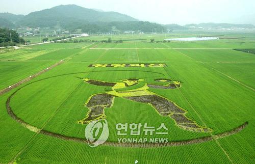 <논에 대형그림 농사짓는 괴산군 농기센터> -연합뉴스 논에 그린 대형그림 (괴산=연합뉴스) 충북 괴산군농업기술센터 직원들이 감물면 이담리 이담저수지 인근 1만2천여㎡의 논에 친환경농업을 선도하는 청정괴산의 이미지를 표현하기 위해 유색벼를 이용, 가로 80m, 세로 100m 크기로 풍요를 상징하는 농악(상모)놀이 하는 모습의 작품을 만들었다. <<괴산군농업기술센터 제공>> wkimin@yna.co.kr (괴산=연합뉴스) 민웅기 기자 = 충북 괴산군농업기술센터(소장 황용하)가 감물면 이담리 이담저수지 인근 논에 대형 벼 예술작품을 만들고 있다. 8일 괴산 농기센터에 따르면 친환경농업을 선도하는 청정괴산의 이미지를 표현하기 위해 이 일대 1만2천여㎡의 논에 유색벼를 이용해 가로 80m, 세로 100m 크기로 풍요를 상징하는 농악(상모)놀이를 연출해 작품을 만들고 있다. 이 작업은 농기센터 군정연구 동아리(농촌사랑) 회원을 중심으로 논을 캔버스 삼아 밑그림을 그린 후 색이 다른 황색벼(黃稻)와 검붉은벼(紫稻), 추청벼 등 세 종류의 벼를 심어 성장하면서 아름다운 예술작품이 나타나도록 하는 것이다. 이 작품은 벼가 익으면 장관을 이룰 것으로 기대를 모으고 있다. 농촌을 기존의 식량공급 중심의 역할에서 탈피, 도시생활에서 오는 답답함과 오염된 공기, 소음 등의 스트레스로 찌든 도시민들에게 시원한 자연공간을 제공하고 이는 군 농기센터는 벼를 벨 때까지 이따금 도시소비자를 초청, 예술작품이 완성돼 가는 과정을 이벤트행사를 열어 보여줄 계획이다. 황 소장은 "FTA 체결 등으로 농산물 수입이 개방되면서 우리 농산물이 수입농산물에 비해 가격경쟁에서 밀리면서 불안해하는 농민들이 많다"면서 "이 작품은 농촌의 아름다운 경관을 개발, 국민의 여가문화와 농업인의 소득증대라는 일석이조의 효과가 기대된다"고 말했다.