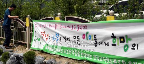 전교조 의정부에 美쇠고기 반대 현수막 -연합뉴스