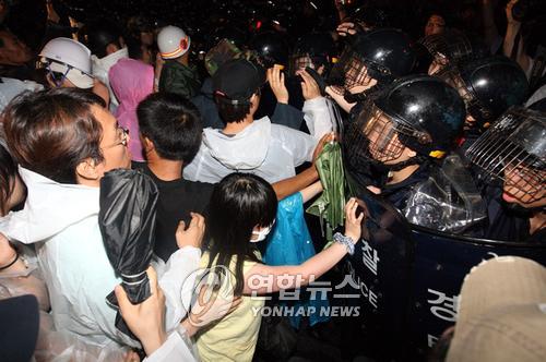 주말 촛불시위서 42명 연행(종합) -연합뉴스 (서울=연합뉴스) 김현태 기자 = 26일 밤 서울 청계광장에서 열린 쇠고기 수입반대 촛불집회에서 집회 참가자들이 집회를 끝내고 종각역 인근의 차도에서 거리시위를 시작하자 경찰이 강제해산에 나서며 시위대와 경찰이 몸싸움을 하고 있다. mtkht@yna.co.kr 청소년 4명 훈방, 38명 조사 (서울=연합뉴스) 강건택 기자 = 서울경찰청은 서울 도심에서 벌어진 주말 촛불시위 해산 과정에서 42명의 시위자를 연행해 청소년 4명을 훈방하고 나머지 38명을 6개 경찰서에서 분산 조사하고 있다고 27일 밝혔다. 경찰은 이들이 전날 밤부터 종로1가와 종로2가 일대의 차로를 장시간 점거하고 해산명령에 불응하거나 진압에 나선 경찰과 몸싸움을 벌인 것으로 보고 불법 행위가 확인되는 대로 사법처리 여부 및 수위를 결정할 방침이다. 경찰은 또 이날 새벽 술에 취해 시위대를 차로 들이받은 혐의로 회사원 조모(28)씨를 붙잡아 조사 중이다. 경찰에 따르면 조씨는 혈중 알코올농도 0.194%의 만취 상태에서 오전 1시20분께 종로2가 탑골공원 앞 차로에 있던 시위대 중 6명을 차로 치어 다치게 한 혐의를 받고 있다. 그러나 조씨도 일부 시위대의 폭행으로 왼쪽 눈 밑 뼈가 골절돼 병원에서 치료를 받았다고 경찰은 전했다. 경찰은 촛불시위를 취재하던 조선일보 사진기자가 시위대로부터 폭행을 당하고 카메라 렌즈 등을 빼앗긴 사건에 대해서도 사실관계를 확인 중이다. 이날 시위로 전ㆍ의경 22명이 진압과정에서 경상을 입고 전경버스 1대가 부서졌으며 무전기 14개가 도난당한 것으로 경찰은 집계했다. 경찰 추산 1천500여명의 시위대는 전날 오후 7시께부터 `0교시ㆍ우열반 반대'라는 주제로 촛불문화제를 연 뒤 차로 점거 시위를 벌이다 경찰과 충돌했으며 일부는 밤새 거리시위를 이어가다 이날 오전 8시께 완전히 해산했다.