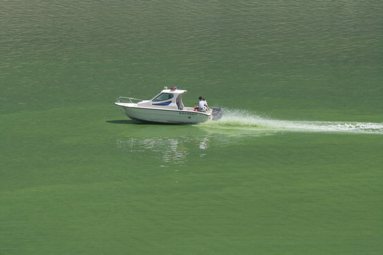 녹조로 물든 ‘초록 호수’ -경남신문 합천댐이 7일 현재 심각한 녹조현상으로 짙은 초록색을 띠고 있다. 물 위로 쾌속정이 달리지 않는다면 잔디밭으로 착각될 정도다. 녹조현상은 댐 상류인 거창군 남하면까지 확산돼 있지만, 대책을 마련하지 못한 채 기온이 내려가 자연소멸 되기만 기다리고 있다.