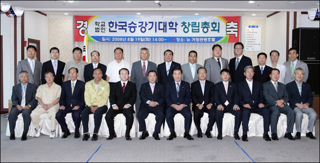 "세계 최고 승강기 인재 육성" -경남일보 학교법인 한국승강기대학 창립총회 세계 최고의 승강기 산업 밸리의 중추적 기능을 수행할 ‘학교법인 한국승강기대학’ 창립총회가 19일 오후2시 뉴 거창 관광호텔에서 개최됐다. 이날 창립총회는 양동인 거창군수를 비롯하여 최재범 거창승강기산업밸리 추진위원장과 도의원, 군의원, 기관단체장, 학계, 기업체, 거창군장학회 임원 등이 참석한 가운데 학교법인 한국승강기대학 설립(안)을 심의·의결했다. 승강기대학은 거창군이 대학설립의 주체로 참여하고, 한국승강기안전관리원은 대학운영의 주체로 참여하여 세계적인 하이테크엔지니어를 육성해내는 대학으로 발전시켜 나가기로 하였으며 학교법인 이사장에는 전 지역구 국회의원인 이강두 국민생활체육협의회장이 초대 이사장으로 선임되었다. 이날 총회의 모태는 창립총회는 지난 7월 28일 학교법인 한국폴리텍과 거창군이 ‘한국폴리텍Ⅶ대학 거창캠퍼스’ 무상 양도·양수 협약체결에 따른 이행사항으로 학교법인 한국승강기대학을 2010년 3월 개교 목표로 창립총회가 개최된 것이다. 학교법인 한국승강기 대학 설립대표로 선임된 양 군수는 인사말을 통해 “창립총회는 ‘거창승강기산업 밸리’의 첫 출발이자 세계 최초의 승강기 대학 설립이라는 아주 뜻 깊은 날이며, 거창으로서는 새로운 도전이자 기회이기에 세계 승강기 산업을 거창이 선점하고자 하는 출발과 도약의 의미를 지니고 있다”면서 “군은 행·재정적 지원에 최선을 다하는 등 세계적인 브랜드가 되도록 군민적 역량을 모아서 전략적으로 육성해 나갈 것”이라고 강조했다. 거창군은 이번 창립총회를 시작으로 오는 9월에 교육과학기술부에 학교법인 인·허가를 신청을 하고, 11월에 학교법인 인·허가 취득 및 대학설립 인·허가 신청을 한 후 학교법인 인·허가 취득이 되면 거창군과 학교법인 한국승강기대학 간에는 ‘한국폴리텍Ⅶ대학 거창캠퍼스’ 무상양도·양수에 관한 협약 체결 후 거창캠퍼스 재산을 학교법인에 무상 출연할 계획이다 한편, 거창군은 2009년 6월에 대학설립 인·허가 취득이 되면 개교준비 및 2010년도 수시 입학생 모집이 되도록 행정적 절차를 이행 중에 있다.
