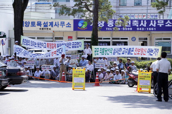 거창 현충시설 놓고 군-보훈단체 갈등 -도민일보 단체들 "당선작 마음에 안 든다"…군 "너무 주관적" 거창지역 4개 보훈단체가 21일 군청 앞마당에서 충혼탑 공모 당선작을 결사 반대한다는 내용으로 집회를 열었다. /이상재 기자 거창군이 보훈가족의 숙원사업으로 추진 중인 호국공원 현충시설 조성사업이 착수 단계에서 지역 상이군경지회와 미망인지회 등 4개 보훈단체 반발로 논란을 빚고 있다. 21일 오전 이들 단체 회원 50명은 군청 앞마당에서 '충혼탑이 기념비냐, 호국영령 통곡한다. 보훈 가족을 배제한 공무원은 사퇴하라'는 등의 피켓을 들고 집회를 했다. 이날 회원들은 거창군에서 호국공원 현충시설 조성사업 공모를 심사하면서 자신들을 배제하고 업체를 선정, 자신들이 원하는 작품특성이 아니라며 보훈가족을 무시한 충혼탑 공모 당선작을 결사반대한다고 목소리를 높였다. 군에서는 그동안 2006년 수립한 현충시설 재정비 기본계획을 바탕으로 2007년 2월 주민 공청회를 열었으며 지난 4월에는 호국공원조성 충혼탑 및 조형물설치를 위한 보훈단체 간담회를 개최하는 등 의견을 수렴해 왔다. 이 같은 과정을 거쳐 지난 5월 호국공원 현충시설 조성공사를 '지방자치단체를 당사자로 하는 계약에 관한 법률과 지방자치단체 협상에 의한 계약 체결 기준에 의한다'는 공고를 하고 제안공모를 하게 됐다. 이후 3개 업체((주)화성, 디자인 어투, (주)스톤핸지)가 응모해 전문가들로 구성된 심사위원회에서 우선 협상 적격 업체로 (주)화성을 선정했으나 결과를 들은 보훈단체에서 당선작이 자신들의 마음에 들지 않는다며 전면 재검토를 주장하고 나선 것이다. 문제는 공모 당선작을 대한 이해 당사자라고 할 수 있는 보훈단체들의 반대 이유가 지나치게 주관적일 뿐만 아니라 과거의 고정관념에 사로잡혀 있다는 비판적 지적이 나오고 있다는 점이다. 행정에서도 계약과정을 비롯한 행정절차에 아무런 문제가 없는 만큼 변경은 있을 수 없다는 태도를 보이고 있다. 군 관계자는 "협상에 의한 계약방식에서 업체들의 제안서를 평가하는 심사위원에는 공정성 확보를 위해 공무원이나 이해 당사자가 참여할 수 없도록 관련법에 명확히 규정돼 있다"며 "사정이 이러함에도 보훈단체들이 자신들을 작품 심사에서 배제했다고 성토하는 것은 계약과정에 대한 이해가 부족한 탓"이라고 말했다. 공모작 심사위원으로 참가했던 한 대학교수는 "현충시설은 과거에는 위압적이고 웅장한 충혼탑이 상징이었으나 지금은 추념의 큰 취지를 훼손하지 않는 범위에서 생활 속 공원 개념으로 변하고 있다"며 "이번 공모작 심사기준도 이런 시대적 흐름과 전문가들의 시각이 충분히 반영된 결과"라고 강조했다. 거창군 호국공원 현충시설 조성사업은 현 충혼탑 일원에 14억 원의 사업비를 들여 위패 봉안실(100㎡) 1동과 충혼탑 1기를 비롯해 현재 다른 곳에 있는 참전 기념비와 전공비 2기를 옮겨 설치하고 토목 부대공사 등을 거쳐 오는 2010년 완공 예정이다.