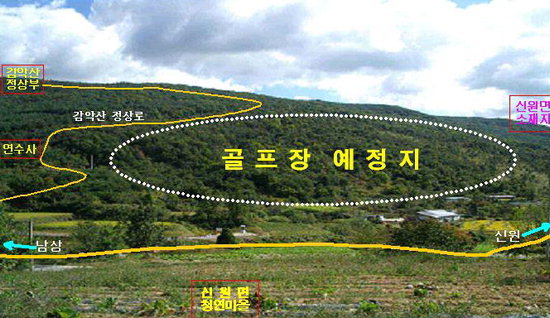 거창 '감악산 골프장' 건설 어떻게 돼가나 -도민일보 소이기주의 극복이 최대 관건 시행사, 실시계획 승인·허가 절차 마무리…지역민, 환경오염 우려 반발 '막바지 진통' 신원면 덕산리 일대에 추진 중인 감악산 골프장 예정지. /거창군 제공 거창군이 골프 대중화 흐름을 타고 미래 지속할 수 있는 성장동력의 하나로 조성하고 있는 '감악산 골프장' 건설 사업이 착수 단계부터 주민과 사업시행자 간 마찰 등으로 주춤거리고 있다. 행정 절차 이행 등으로 수년째 계속되고 있는 이 사업은 골프장 구역에 인접한 약수터의 샘물 고갈을 비롯해 환경오염을 걱정하는 인근 주민들의 끊임없는 반발 등으로 막바지 진통을 겪고 있다. 문제의 원인을 찾아보고 대책은 무엇인지, 어떻게 실마리를 풀어야 할지 짚어 본다. ◇감악산 골프장 어떻게 조성되나 = 가칭 '거창 컨트리클럽'이라는 이름으로 진행되고 있는 '거창 감악산 골프장'은 신원면 덕산리 일대 184만 3303㎡에 회원용 18홀, 대중용 9홀 등 모두 27홀 규모로 조성되며 710억 원을 투입, 오는 2010년 문을 열 계획이다. 지난 2002년 터 매입을 시작으로 주민 설명회 등을 거치면서 순항하는 듯했으나 지역민들의 반대와 시행사 내부 사정 등이 겹쳐 일시 중단되기도 했다. 2005년 '장영건설(주)'이 새로운 시행사로 선정되면서 사업이 탄력을 받기 시작해 지난 3월 13일 경남도로부터 관련 도시계획시설 사업 실시계획 승인을 받아 허가 절차가 마무리 돼 지난 5월 15일 착공신고를 마쳤다. ◇무엇이 논란인가 = 이미 경남도로부터 사업허가를 얻어 본격적인 착수단계에 들어선 골프장 건설사업이 주춤거리는 것은 지역 주민들을 비롯해 사업구역과 접해 있는 '연수사' 사찰과 신도회 등 다양한 주체들이 개입해 있다. 신원면 청연·내동·청룡 등 3개 마을 주민이 중심이 된 '감악산 골프장 대책 위원회'는 지난 4일 군에 청원서를 제출했다. 이들은 청원서에서 "애초 감악산 골프장 반대활동을 전개하다가 지역 발전을 위해 같이 힘을 모으자는 취지에서 우호적 입장으로 선회했다"라며 "이는 지역경제에 도움이 되고 지역민이 주변 펜스 설치공사, 공사장 식당, 벌목작업 등에 참여함으로써 생계에 보탬이 될 것이라는 판단 때문이었다"라고 밝혔다. 이어 대책위는 "시행사 측이 자기들의 이익을 위해 약속을 이행하지 않고 지역민들을 기만하고 있다"며 "따라서 장영건설의 골프장 공사 시행을 원칙적으로 반대한다"고 격앙된 반응을 보이고 있다. 골프장이 들어설 감악산 일대에는 전통사찰인 '연수사'와 약수터가 자리 잡고 있다. 연수사 측은 골프장 조성 사업이 본격화되고 대형 관정이 굴착되면 오랜 세월 동안 마르지 않고 젖줄이 돼 온 약수터의 샘이 마를 것을 걱정하고 있으며 천년고찰인 사찰은 물론 절을 지키는 700년 수령의 은행나무를 비롯한 산림환경이 훼손될 것을 우려하고 있다. 특히 사찰 신도회 대표들도 환경·교통·재해 영향 평가 등 이행과정에 의구심을 제기하면서 연수사 가까이 들어선 골프장을 100~500m 정도 옮기는 방안 등을 사업 시행자와 행정당국에 요구하고 있다. ◇남은 과제는 = 사업 시행자인 '장영 건설(주)'측은 문화재 지표조사와 환경·교통·재해 영향평가 등 적법한 절차를 거쳐 공사를 진행하고 있다는 점을 강조하며 주민들이 무리한 요구를 하고 있다는 태도를 보이고 있다. 특히 약수터 고갈 주장에 대해서는 지하수 관정이 2㎞ 이상 떨어진 곳에 있어 전혀 영향이 미치지 않는다고 주장하고 있다. 시행사 관계자는 "계량기를 부착해 수량의 변동을 측정하고 문제가 된다면 100% 보상을 이행한다는 각서를 군에 이미 제출해 놓았다"며 "GPS 측정 결과 사찰에서 골프장 경계까지는 직선거리로 500여m 정도의 충분한 거리가 확보돼 있어 약수터 고갈 운운은 근거 없는 주장"이라고 강조한다. 또 시행사 측은 "일부에서 우려하는 지하수 고갈과 산림 훼손 문제는 환경 친화적인 골프장을 조성하겠다는 회사의 일관된 방침이 있는 만큼 사업 추진과정에서 대화를 통해 이를 해소 할 수 있을 것"이라고 말했다. 지역민들은 거창군이 성의 있는 중재노력을 보여 달라고 요청하고 있으며 '연수사' 측도 군이 사찰 측의 주장을 보증해 준다면 협의에 나설 수도 있다는 다소 유연한 입장이다. 하지만 일부 반대 세력이 개입해 주민들을 부추기고 있다는 여론도 떠돌고 있다. 일가에서는 법적 절차와 관계없이 사업 시행자가 이해관계 집단과 사업진행과정을 놓고 충분한 협의를 거쳐야 한다는 목소리에도 귀를 기울여야 한다는 지적도 있다.