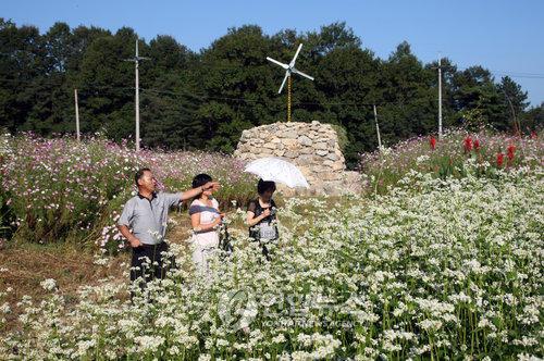 <주민 땀 밴 `구미 무을 생태공원' 인기예감> -연합뉴스 구미 무을면 메밀꽃동산 (구미=연합뉴스) 손대성 기자 = 경북 구미시 무을면 안곡리에 조성된 생태공원에서 방문객들이 하얀 메밀꽃을 관람하고 있다. << 전국부 기사 참조 >> sds123@yna.co.kr (구미=연합뉴스) 손대성 기자 = "저수지 옆에 코스모스 동산과 메밀꽃까지 어우러져 환상적이네요." 최근 경북 구미시 무을면 안곡리에서 만난 최인숙(55) 씨는 감탄사를 연발했다. 무을면 안곡리는 구미에서 오지에 속해 찾는 사람이 드문 한적한 농촌마을이다. 그러나 이 마을 전체가 최근 공원화되면서 입소문을 타고 방문객이 늘고 있다. 19일 구미시에 따르면 무을면 주민들은 지난해 12월 안곡저수지 주변에 농촌공원화사업으로 무을생태공원을 조성했다. 무을생태공원은 구미시와 무을면의 도움을 얻어 주민들이 자발적으로 나서서 만들었다는 점이 다른 공원과 차이가 있다. 안곡저수지 주변 길을 따라 조성된 무을생태공원은 돌탑 위에 세워진 바람개비와 이를 둘러싼 코스모스.메밀꽃 동산이 방문객을 처음 맞이한다. 사람 키보다 훨씬 큰 코스모스동산 사이를 걷다 보면 하얀 메밀꽃이 넓게 펼쳐져 장관을 이루고 있다. 인근에는 사진작가 한태덕 씨가 옛 안곡초등학교를 임대해 운영하는 생태사진마을이 있다. 오랫동안 언론사 사진기자로 근무했던 한 씨는 구미 주변에서 찍은 다양한 생태.환경 사진을 전시해 놓고 있다. 생태사진마을 앞에는 30여개의 다양한 솟대로 구성된 솟대공원과 조롱박터널, 들꽃공원이 자리 잡고 있다. 방문객들은 조롱박터널 사이를 걷거나 주변에 마련된 산책길을 따라 이동하며 안곡리의 풍광을 감상할 수 있다. 저수지 주변 길을 따라 걷다 보면 돌을 짜 맞춘 희망탑이나 연못, 생태하천 등도 만날 수 있다. 무을면과 주민들은 안곡저수지 주변에 은행나무 산책길과 단풍나무 산책길 등 테마산책로를 조성했고, 계절 별로 다양한 꽃을 즐길 수 있도록 유채꽃이나 봉숭아, 맨드라미, 코스모스, 해바라기, 메밀 등을 심었다. 안곡1리 주민들은 지난 8월 초 350년 된 마을공동우물을 찰흙을 다져 넣은 뒤 나무로 우물틀을 만들어 전통적인 형태로 수리.복원하기도 했다. 이 덕분에 낚시꾼들 외에는 별로 찾는 사람이 없던 무을면 안곡저수지 일대를 찾는 관람객이 최근 들어 수십 명에 달하고 있다. 상주에서 왔다는 40대 부부는 "아직 부족한 점도 있지만 주민들이 합심해 만들었다는 것이 놀랍다"며 "조금 더 가다듬으면 훨씬 멋진 곳으로 자리 잡을 수 있을 것 같다"고 말했다. 주민들은 다음달 4일 옛 안곡초등학교에서 제3회 무을 생태고을 버섯축제를 열어 도시민들에게 무을의 아름다움과 무을지역 농산물의 우수성을 널리 알릴 예정이다. 무을면 양영길 부면장은 "주민들이 이른 아침부터 땀을 흘려 공원을 조성했다"며 "단순히 공원 조성에 그치지 않고 소득개발사업을 유치할 수 있도록 준비하고 있다"고 말했다.
