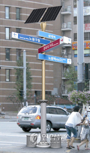 서울 노원구 태양광 도로표지판 개발 -연합뉴스