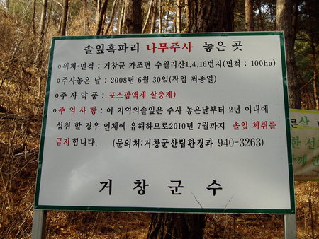 [카메라고발] 거창 의상봉 가는 길… 맞춤법 틀린 안내판 -경남신문 거창군 가조면 수월리 해발 1046m ‘의상봉’을 오르는 길에 설치된 여러 안내판의 내용 중 우리말 맞춤법이 틀린 부분이 있어 빈축을 사고 있다. 신라 문무왕 때 의상대사가 참선한 곳이라는 뜻으로 붙여진 의상봉은 천년 사찰 고견사까지 품고 있어 많은 이들이 즐겨 찾는데 올바른 우리말 표현이 아쉽다. ‘산벚나무’가 ‘산벗나무’로 잘못 표기돼 있고, ‘물푸레 나무’ 설명 중 ‘꺾어’가 ‘꺽어’로, ‘소염제’가 ‘소염재’로 잘못 표기됐다. 또 거창군수 명의의 ‘솔잎혹파리 나무주사 놓은 곳’ 안내판의 ‘솔잎 체취 금지’는 ‘채취’가 ‘체취’로 잘못 표기돼 있고 띄어쓰기도 잘못돼 있다.